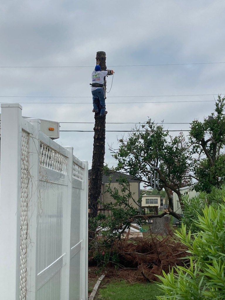 I just received the call, we are next on the list for the Norfolk Pine trees. The company will start cutting them tomorrow (Thursday) unless any emergencies come up. As noted in the previous blog post, we are allowing lot residents to keep part of the base as a “planters platform” for creative ideas. 5′ will be the maximum height we would leave stumped. Lot residents would need to clearly mark the tree at the height to be salvaged (you can use ribbon, spray chalk, caution tape, etc. to mark cut line).