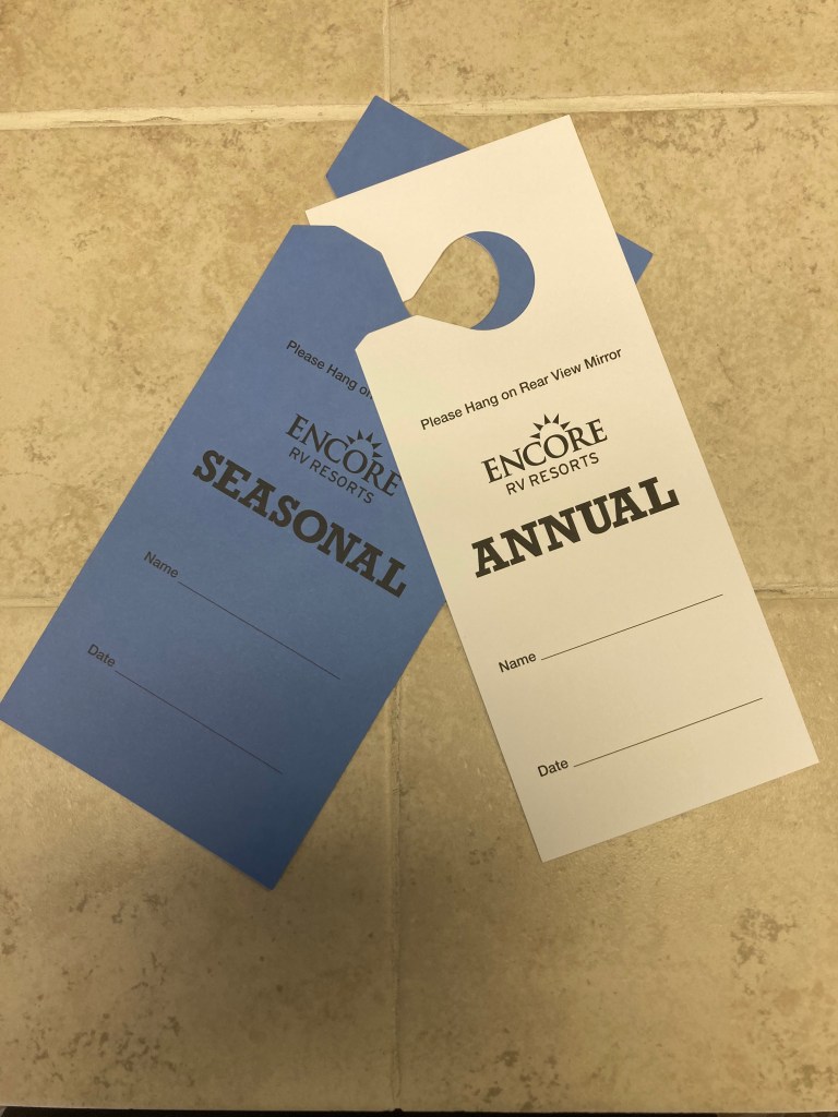 We have parking passes for the storage lot coming, as well as guest day passes. Essentially, every vehicle coming into the property should have a pass displayed on their vehicle.
