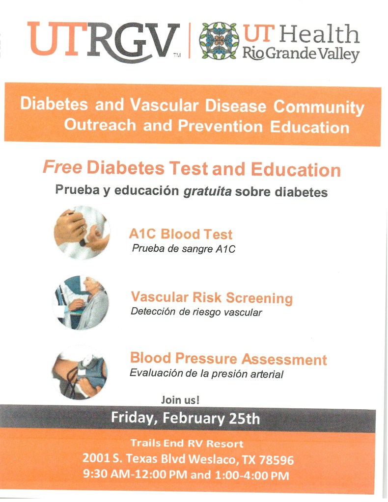 This Friday UTRGV will be here at Trails End Library doing FREE Diabetes Test and Education. Flyers and Sign up is located in the Card Hall in the Health section on the bulletin boards.