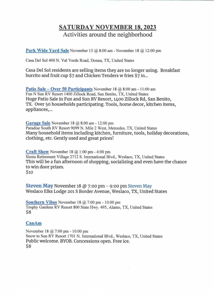 Sat. Dec 2 from 8 to 12 at Ranchero, Weslaco