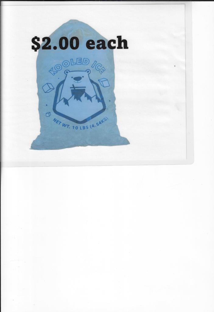 Ice for Sale by office in Library/card area January 11, 2024Trails End This is on the Honor system so there is a box above the cooler to put the money in. 10lbs bag for $2.00 Share this: Click to share on X (Opens in new window) X Click to share on Facebook (Opens in new window) Facebook Like Loading... Related