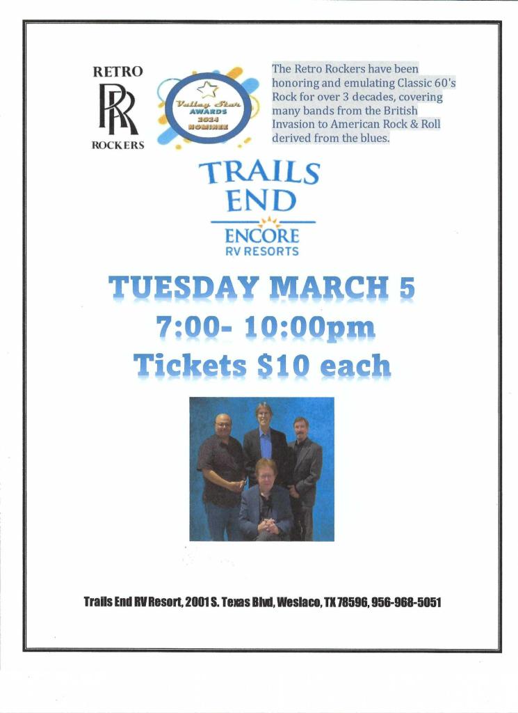 We are having a Masquerade Ball Murder Mystery here at Trails End on Saturday March 23. See flyers posted throughout the park. Some people were confused. Details will be posted again on the Masquerade Ball. Voting for best costumes will be put in a drawing to win 2 Osprey Dolphin watch tickets.