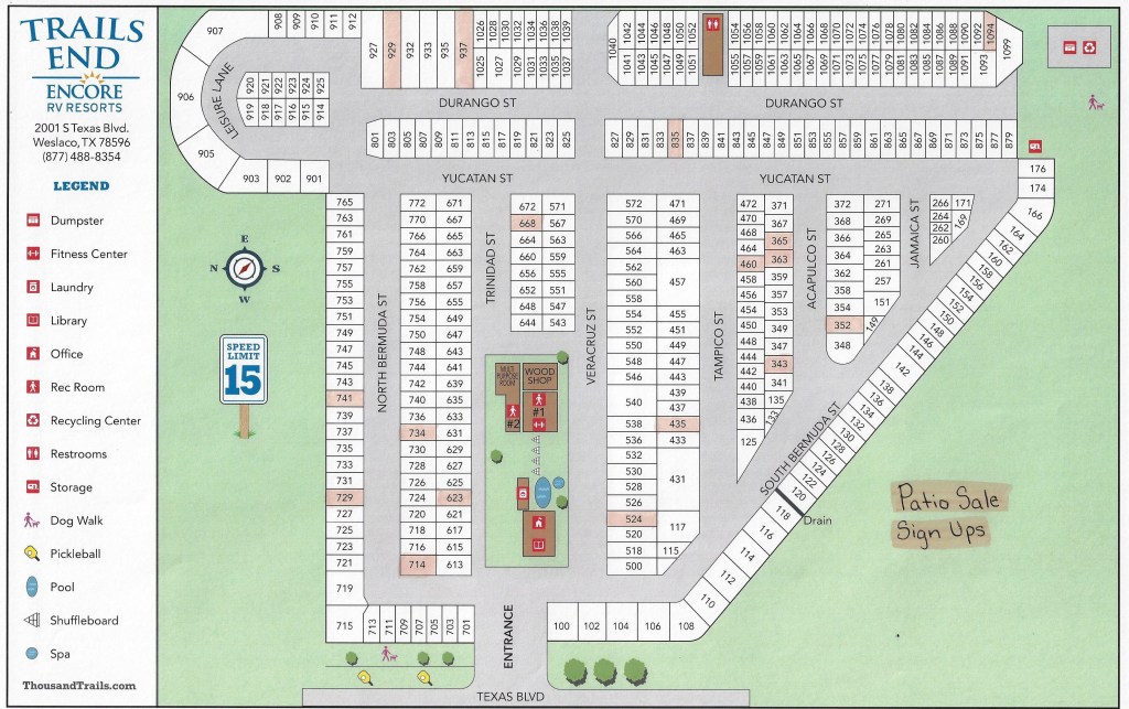Patio Sale Tomorrow March 8, 2024Trails End Here is a map of lots signed up for the patio sale tomorrow 3/9/24 at 8am Share this: Click to share on X (Opens in new window) X Click to share on Facebook (Opens in new window) Facebook Like Loading... Related