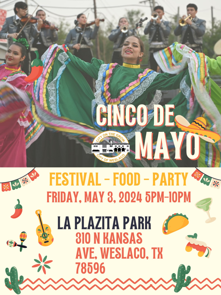 Today Friday May 3rd from 5pm-10pm, the City of Weslaco will be having a Cinco De Mayo festival at La Placita Park at 310 N. Kansas Ave, Weslaco, Tx.