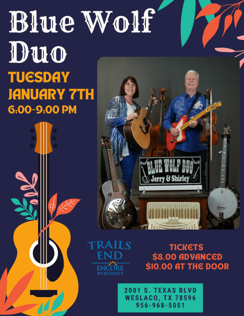 The Blue Wolf Duo will be at Trails End January 7th 2025 for our Tuesday night dance from 6pm-9pm.