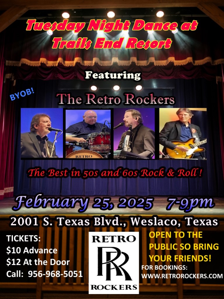 Retro Rockers Tonight! February 25, 2025Trails End Tickets on sale in the office or at the door! Share this: Click to share on X (Opens in new window) X Click to share on Facebook (Opens in new window) Facebook Like Loading... Related