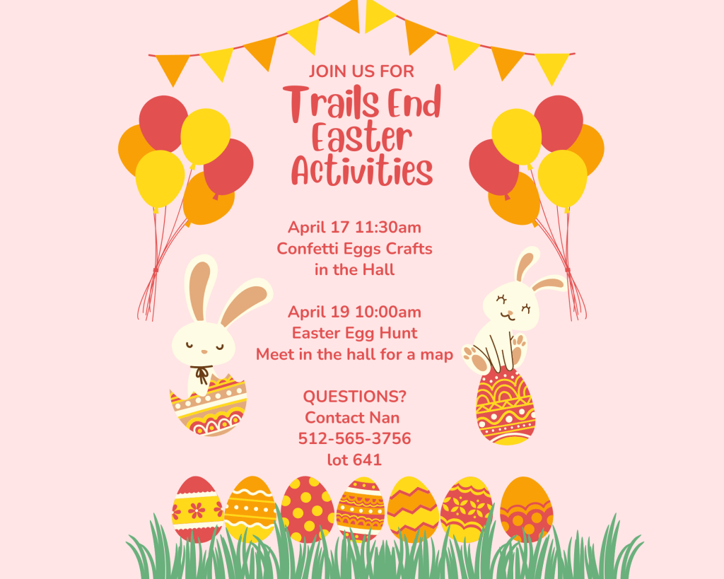 Easter Activities Image April 14, 2025Trails End Share this: Click to share on X (Opens in new window) X Click to share on Facebook (Opens in new window) Facebook Like Loading... Related