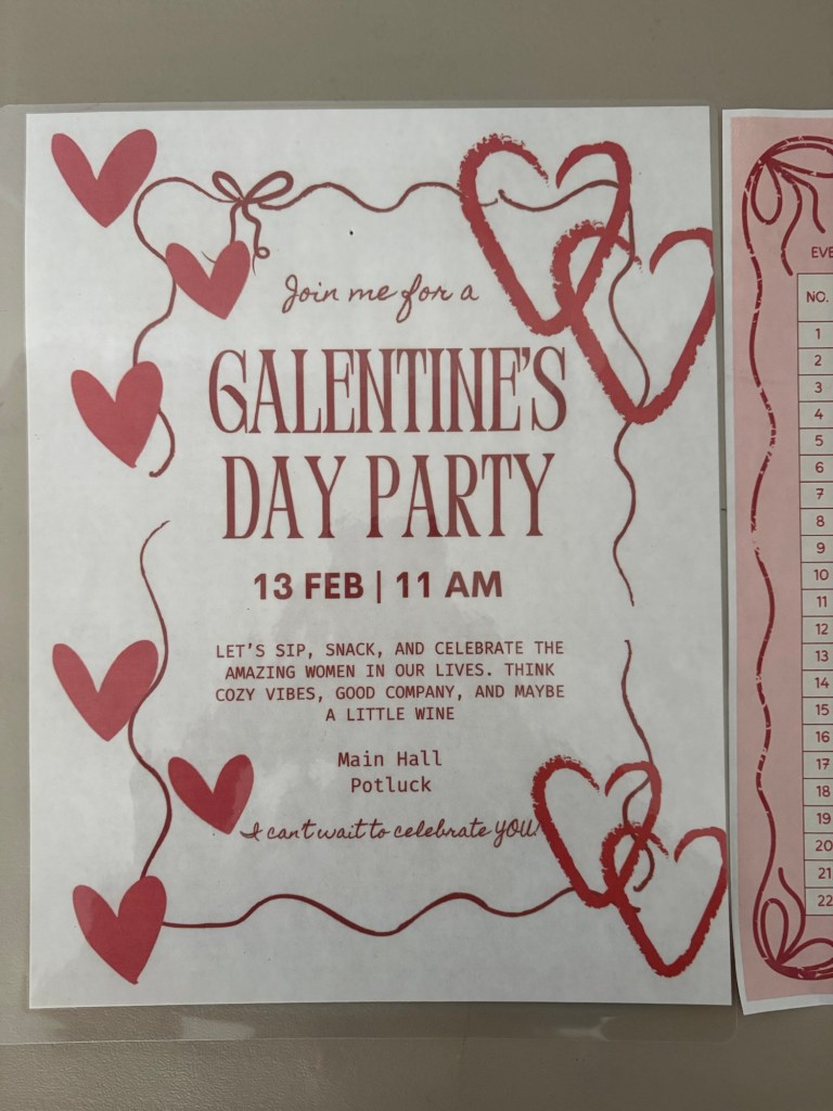 Ladies , we will be having a Galentine’s (Gal’s) Day Party Feb 13, 2026 @11Am it’s a Potluck , sign up sheet in the main hall . Last day is Feb 11. To sign up .