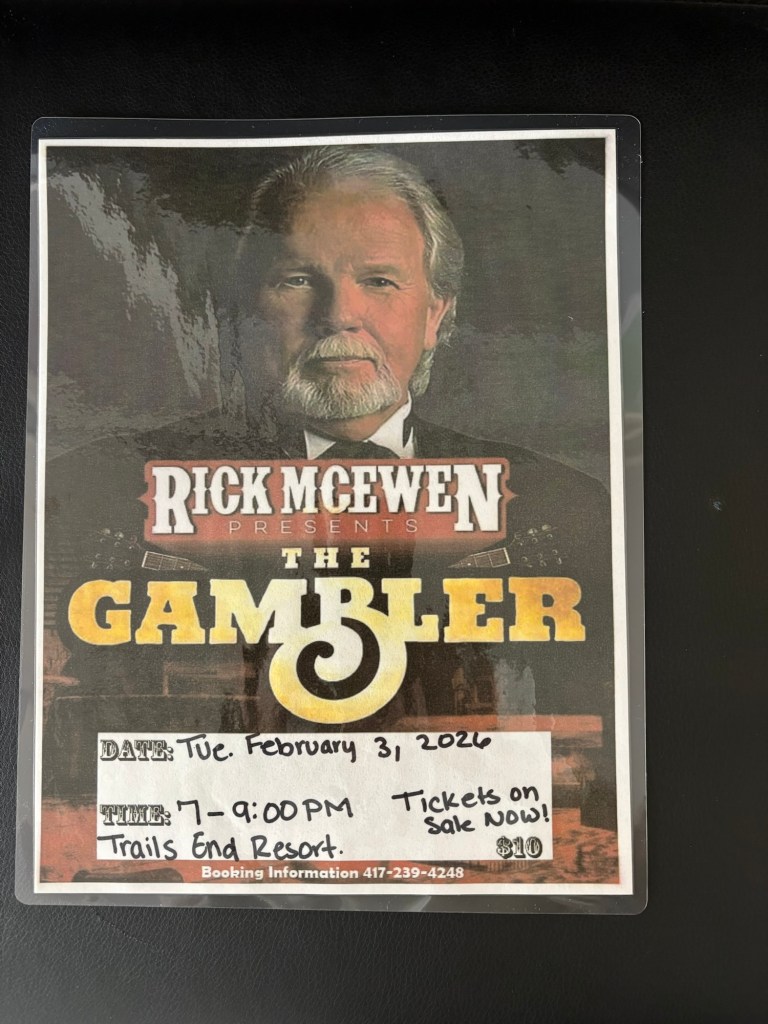 The Gambler Tuesday Feb 3 ,2026 7-9:00Pm tickets on sale now ! Share this: Share on X (Opens in new window) X Share on Facebook (Opens in new window) Facebook Like Loading...